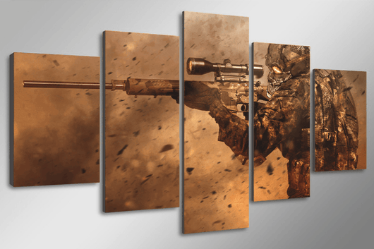 5 Panel Modern Combat Sniper Shooting Framed Wall Canvas Art