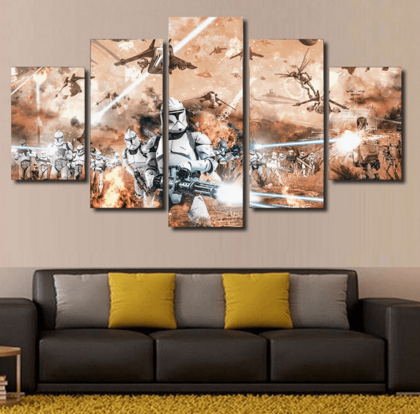 We specialize in high quality large multi-panel wall canvas, purchase this amazing Star Wars battlefield wall canvas today we will ship the canvas for free. This is the perfect centerpiece for your home. It is easy to assemble and hang the panels together which makes this a great gift for yourself or your loved ones. The multi panel canvas is unique and creative, you and your guests will be amazed every time you enter the room. We offer professional packaging for every painting you purchase by bubble bag wrap, 4 corner protection, and hard carton before it is ready to be shipped to your home. Limited quantities left, own your Star Wars battlefield wall canvas today.