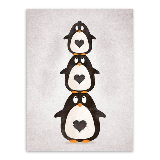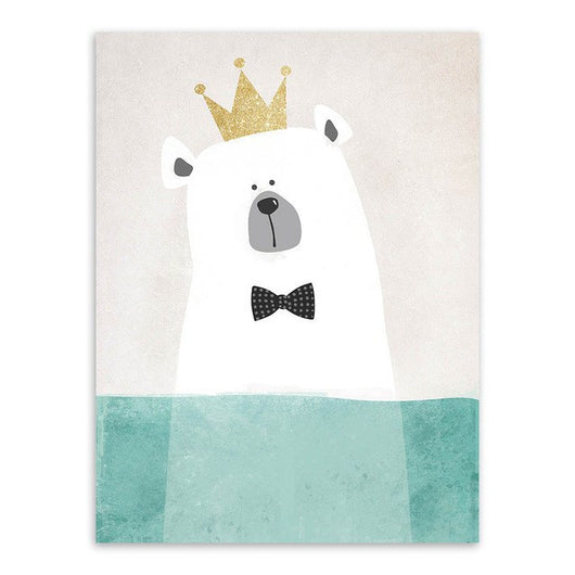 6 Panel Nordic Kawaii Bear Hippo Bird Unframed Wall Canvas Art