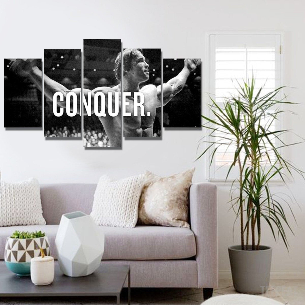 We specialize in high quality large multi-panel wall canvas, purchase this amazing Conquer Arnold Schwarzenegger wall canvas today we will ship the canvas for free. This is the perfect centerpiece for your home. It is easy to assemble and hang the panels together which makes this a great gift for your loved ones. The multi panel canvas is unique and creative, you and your guests will be amazed every time you enter the room. We offer professional packaging for every painting you purchase by bubble bag wrap, 4 corner protection, and hard carton before it is ready to be shipped to your home. Limited quantities left, own your Arnold Conquer canvas today.