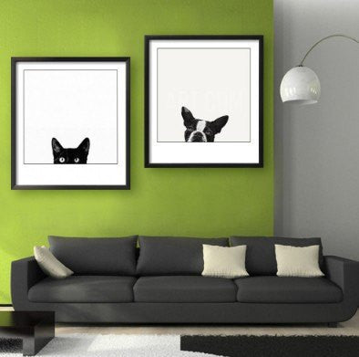 Style your home with this cat and dog set of 2 modern wall canvas today and we will ship this painting for free. This is the perfect centerpiece for your home. We offer professional packaging to ensure your beautiful painting will arrive safely. This painting is spray painted not hand painted. Frame means the painting has been stretched on a wood frame. It is ready to hang! Limited quantity left, own your cat and dog set of 2 modern wall canvas today.