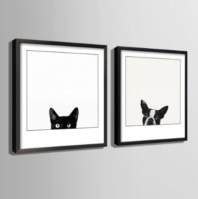 Cat and Dog Set of 2 Framed Wall Canvas Art