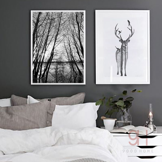 Nordic Style Deer Forest Canvas Print Unframed Wall Art